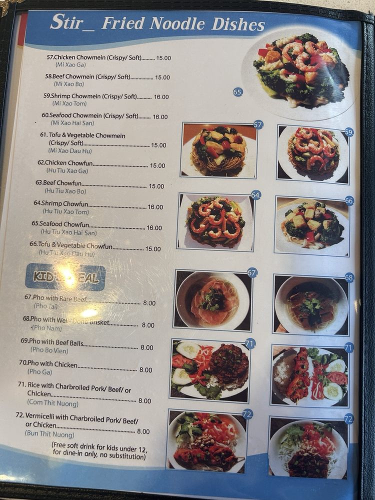 Introducing the menu at Pho Oh Tasty, a Vietnamese restaurant in Orange, CA, offering a wide range of options for both meat lovers and vegetarians. The restaurant provides a casual and relaxed ambiance, perfect for dining in or grabbing takeout. Customers rave about the fresh shrimp spring rolls and flavorful pho dishes, with options like rare steak and tofu adding variety to the menu. The service is quick and friendly, making it a great spot for a quick lunch or dinner. Pho Oh Tasty also offers catering services, happy hour specials, and a welcoming atmosphere for groups and families. With a focus on quality ingredients and delicious flavors, this local gem is a must-visit for pho enthusiasts looking for a satisfying and tasty dining experience.